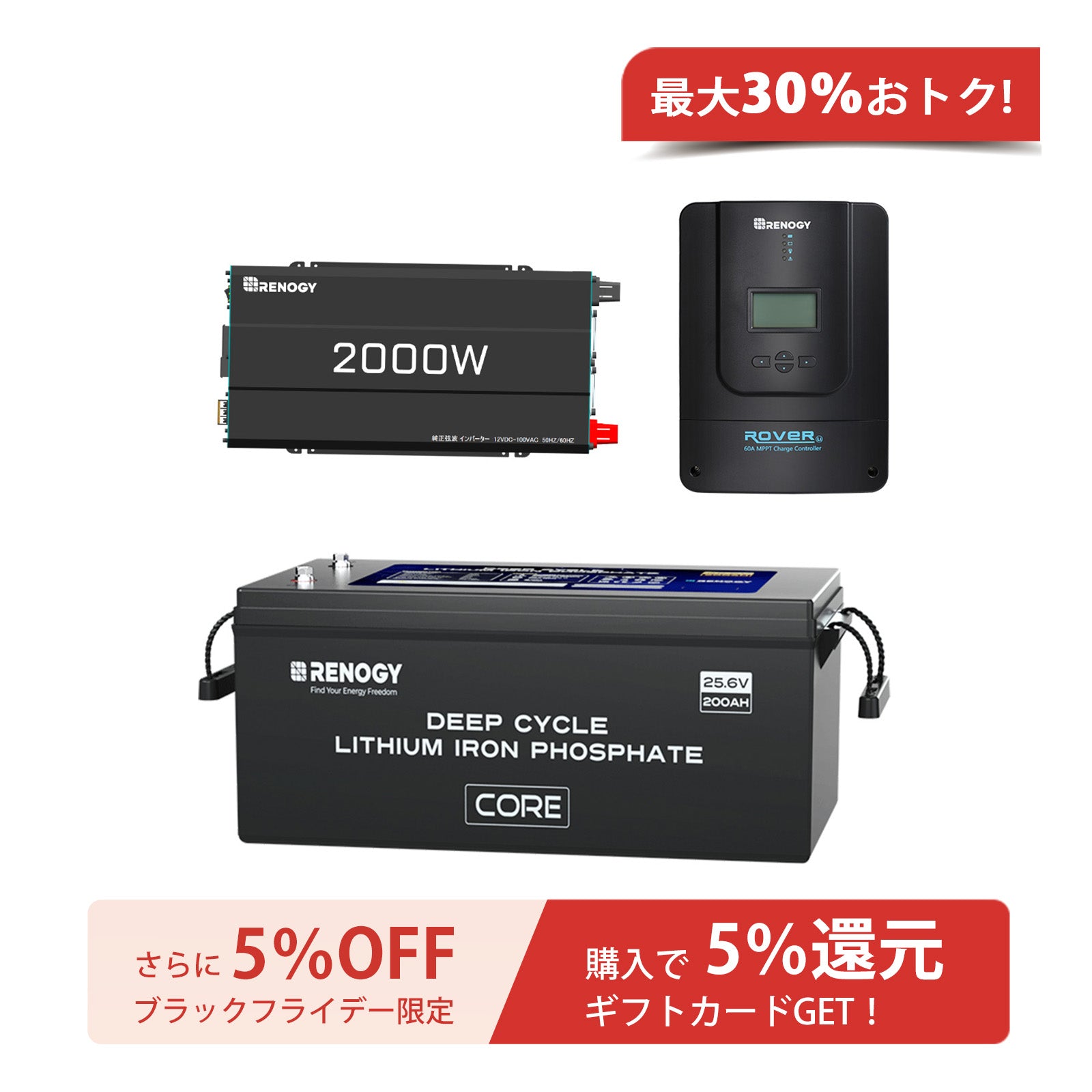 Renogy ヒート機能付き 24V 200Ah リン酸鉄リチウムイオンバッテリー+2000W 24V 純正弦波インバーター+60A MPPT チャージコントローラー セット