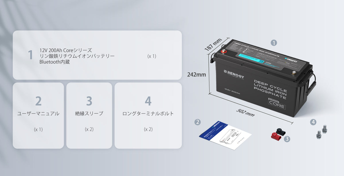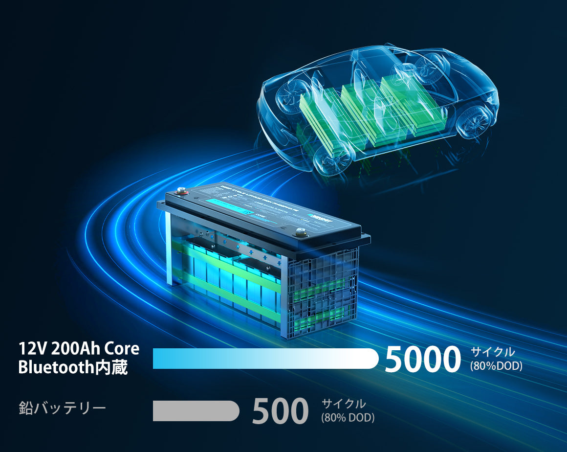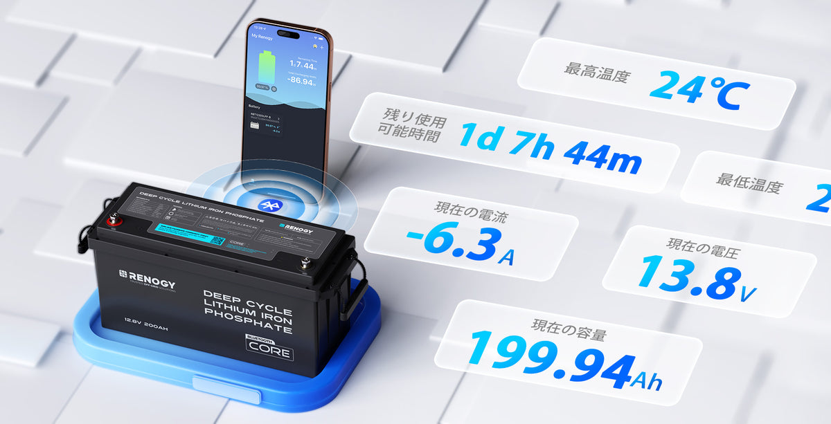 12V 200Ah Coreバッテリー、新Bluetooth搭載でさらにスマートに!