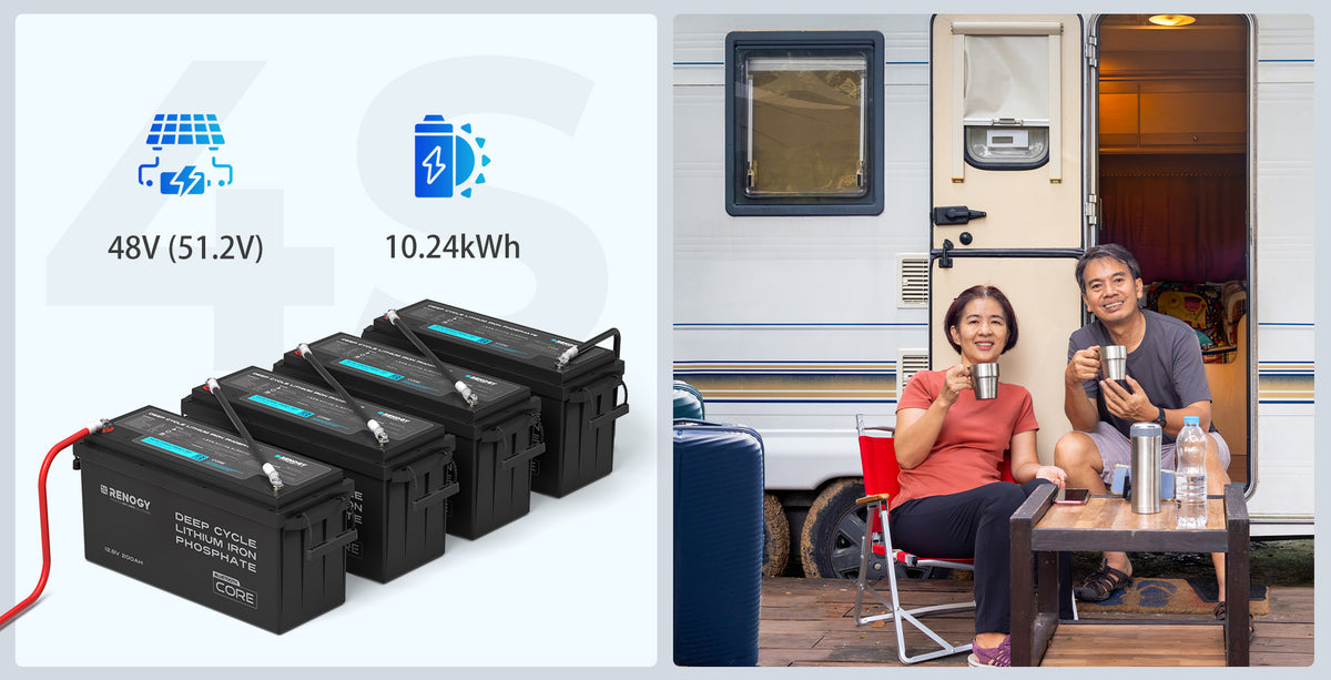 12V 200Ah Coreシリーズバッテリーを直列接続することで、用途に応じた24V、36V、48Vシステムを手軽に構築できます。