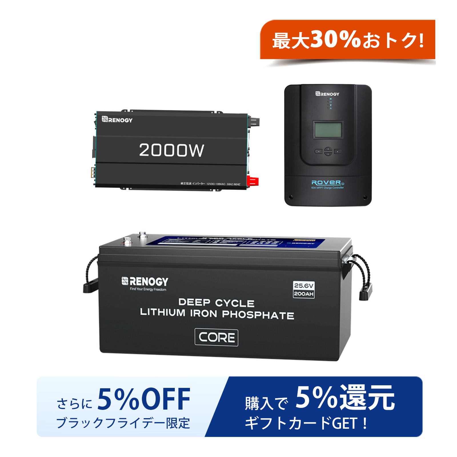 Renogy ヒート機能付き 24V 200Ah リン酸鉄リチウムイオンバッテリー+2000W 24V 純正弦波インバーター+60A MPPT チャージコントローラー セット