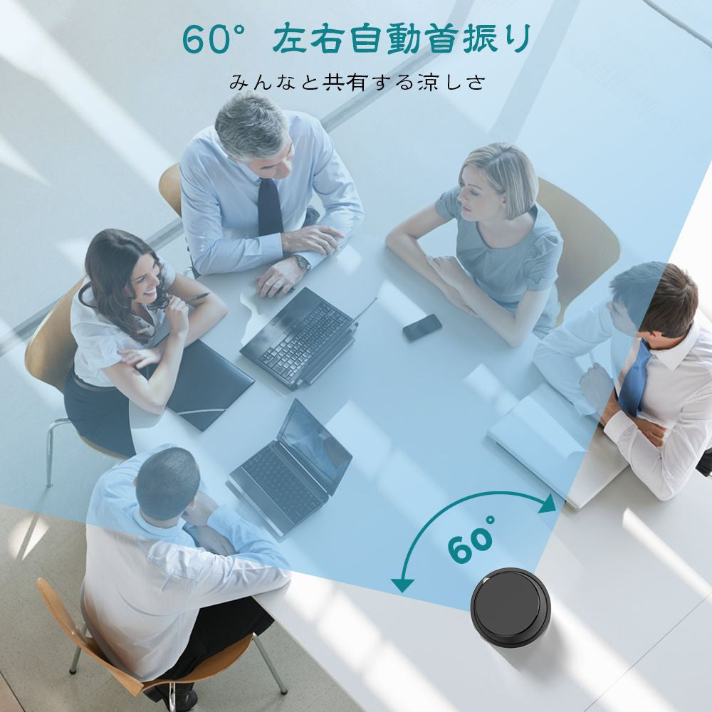 小さくてなめらかな外観のこのデスクファンは、低ノイズ(40dB未満)で動作し、周囲に静かで涼しい空気の流れを送り込みます。