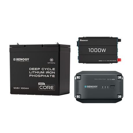 Renogy ヒート機能付き 12V 100Ah Mini リン酸鉄リチウムイオンバッテリー+1000W 12V 純正弦波インバーター+12V 40A DC-DC 走行充電器 セット