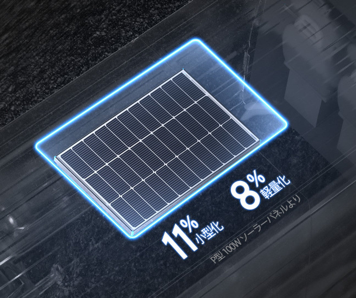 この100W N型ソーラーパネルは、従来のP型パネルよりも8%軽量で11%小型化されています。コンパクトなサイズにより、設置が簡単で、パネルの拡張スペースも確保できます。